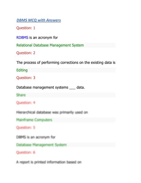 Read Mcq With Answers On Dbms Doc